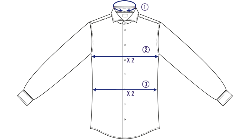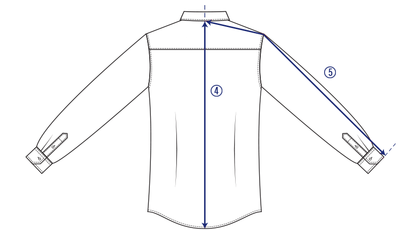 Abrir la camisa y colocar el collar plano, Medir directamente desde el botón hasta el final del ojal.